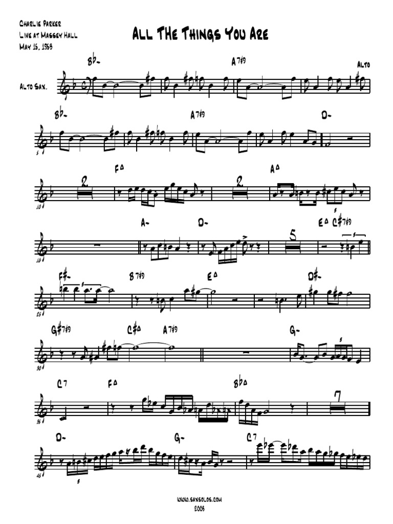 All The Things You Are Charlie Parker Transcription Sheet Music For Saxophone Alto Solo Musescore Com