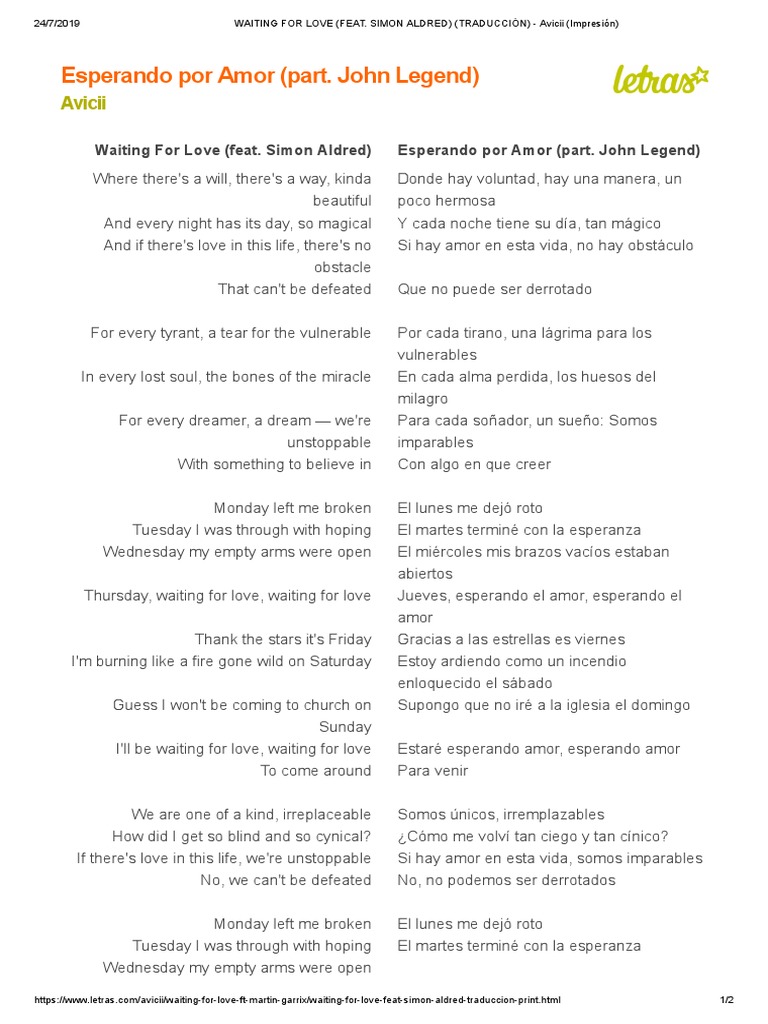 Avicii Waiting For Love Letra En Espanol Ingles Youtube