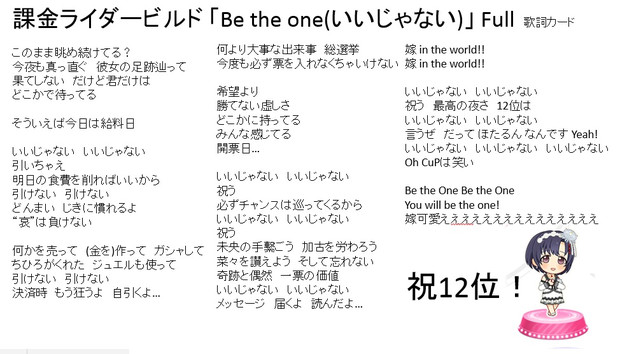 Be The One デレステ替え歌 歌詞カード オトまる さんのイラスト ニコニコ静画 イラスト