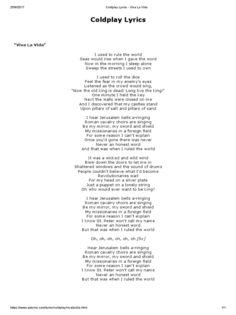 Coldplay Lyrics Viva La Vida Leisure Entertainment General
