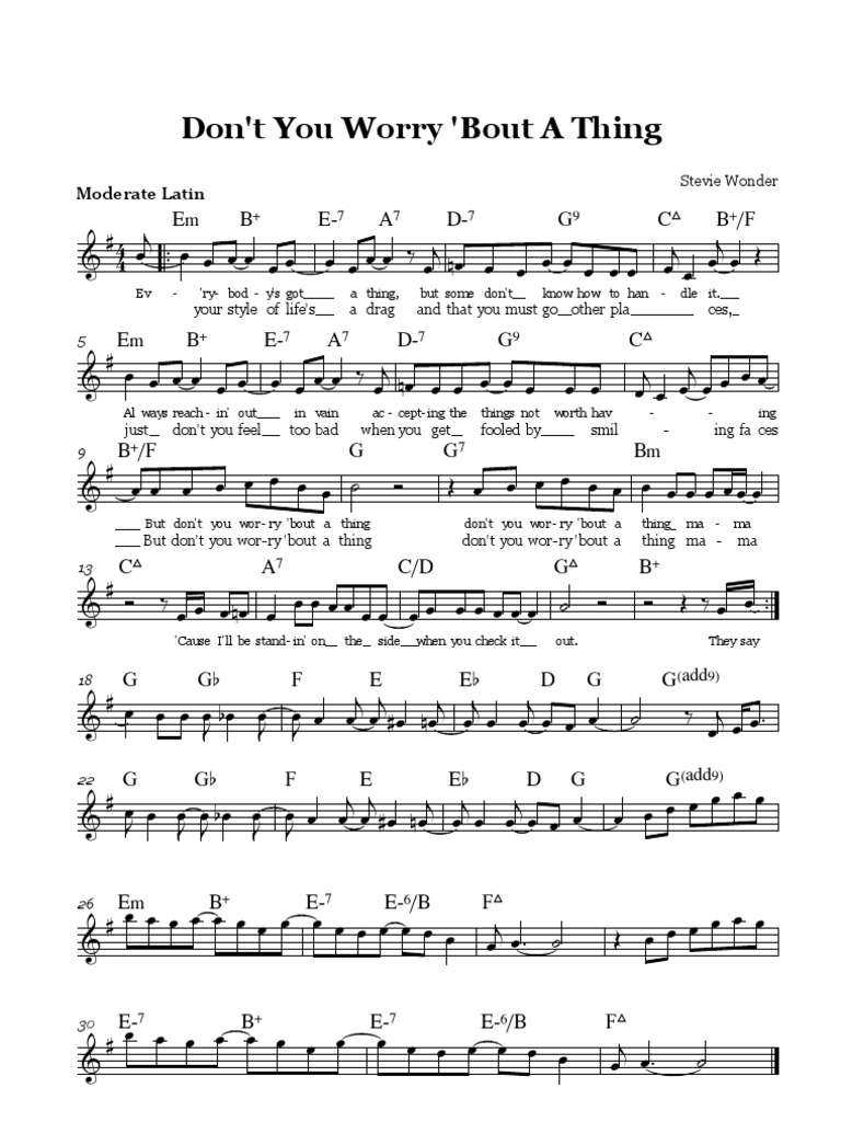 Stevie Wonder Don T You Worry Bout A Thing Sheet Music Leadsheet In E Minor Transposable Download Print Stevie Wonder Music Quotes Lyrics Sheet Music