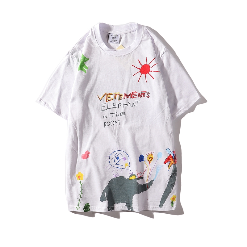 19ss Unisex New Vetements Limited Graffiti Elephant Cotton Short Sleeve T Shirt Shopee Singapore