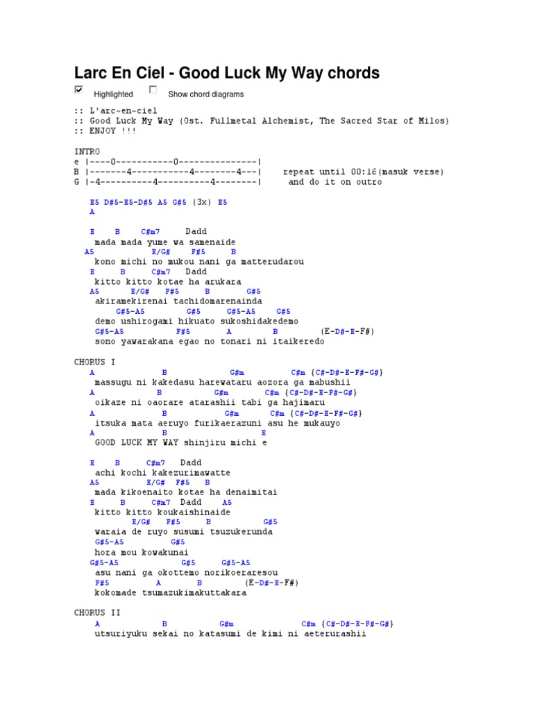 L Arc En Ciel Good Luck My Way Chords Soumaontheblog