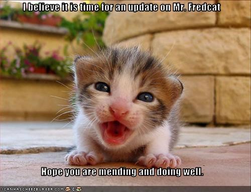 I Believe It Is Time For An Update On Mr Fredcat Hope You Are Mending And Doing Well Cheezburger Funny Memes Funny Pictures