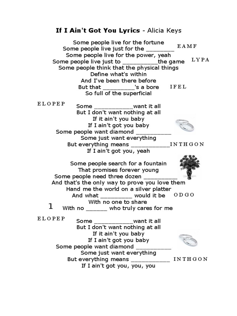 If I Ain T Got You Alicia Key S Gaps Filling Worksheet English Esl Worksheets For Distance Learning And Physical Classrooms