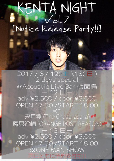 僕たちorange post reasonは今年の3月にメンバーの脱退がありました その後 なるべく早い活動再開を目指していましたが 色々な人と出会って話し 今までより広い視野でバンドのことを考えた結果 僕らはもっともっと沢山の出会いからバンドを始動させても良いのではないかと考えました.