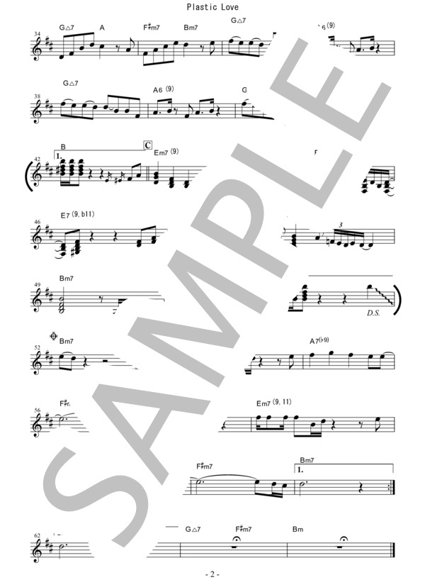 楽譜 プラスティック ラブ 竹内まりや アルトサックス メロディー譜 山下 達郎 アルトサックス 初 中級 Piascore 楽譜ストア