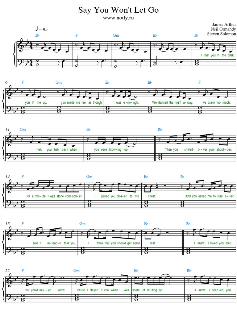 Say You Won T Let Go James Arthur Free Piano Sheet Music Piano Chords