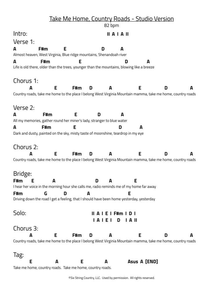 Take Me Home Country Roads Chord Chart And Easy Chord Chart Pdf Song Structure Musical Compositions