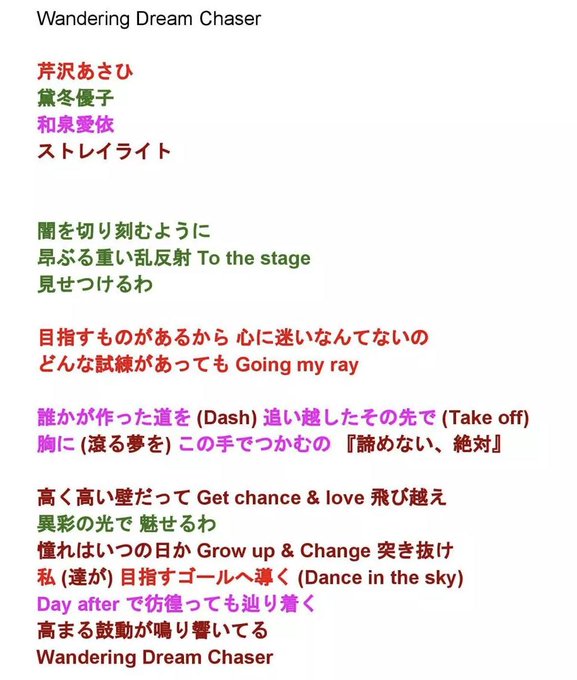 Petra ペトラ Twitter પર Wandering Dream Chaser のfull配信が来たので暫定歌詞です 今回はそれなりに精度高いと思います 歌詞が本当にストレイライトで最高すぎる