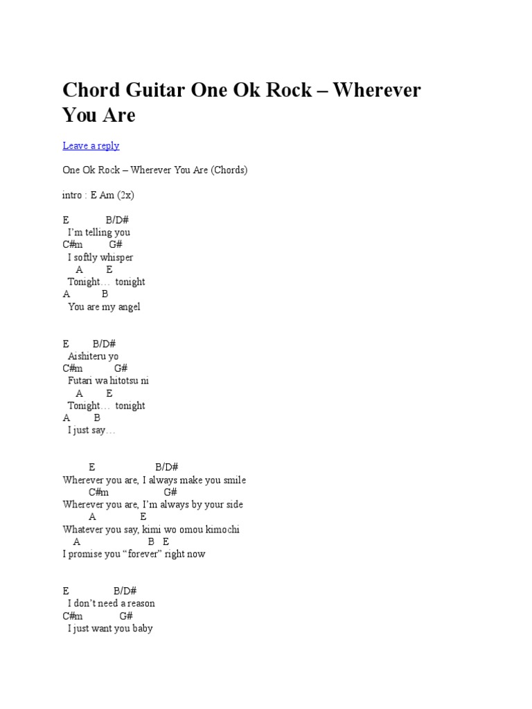 Chord Wherever You Are One Ok Rock Tab Song Lyric Sheet Guitar Ukulele Chords Vip
